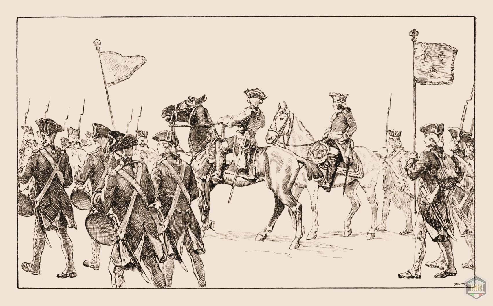 ■ Una bella battaglia (con pochi morti e molta coreografia) metteva fine alle ostilità: uno dei due avversari dichiarava che non giocava più: l’altro prendeva atto della dichiarazione; prendeva in più qualche milione in denaro e, se ne era il caso, anche qualche provincia; dopo di che i due eserciti, malconci in modo molto relativo, facevano contemporaneamente un bel «dietro front» e ciascuno riprendeva la strada per far ritorno alle normali guarnigioni, dove in poco tempo si rimetteva delle busse toccate, e, come si dice ora, «si riportava in efficienza» tal quale era prima della campagna.