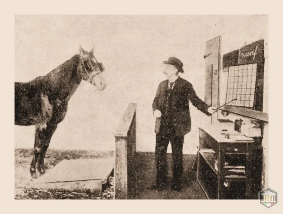 ■ Questi stalloni, istruiti per alcuni mesi dal Krall, hanno rapidamente appreso, col metodo che dirò più sotto, a conoscere i numeri, a contare, a fare alcune operazioni matematiche, (fino all’estrazione di radici quadrate e cubiche) a riconoscere gli oggetti, a rispondere ad alcune domande, e, cosa quanto mai interessante, ad esprimere anche dei pensieri spontanei.