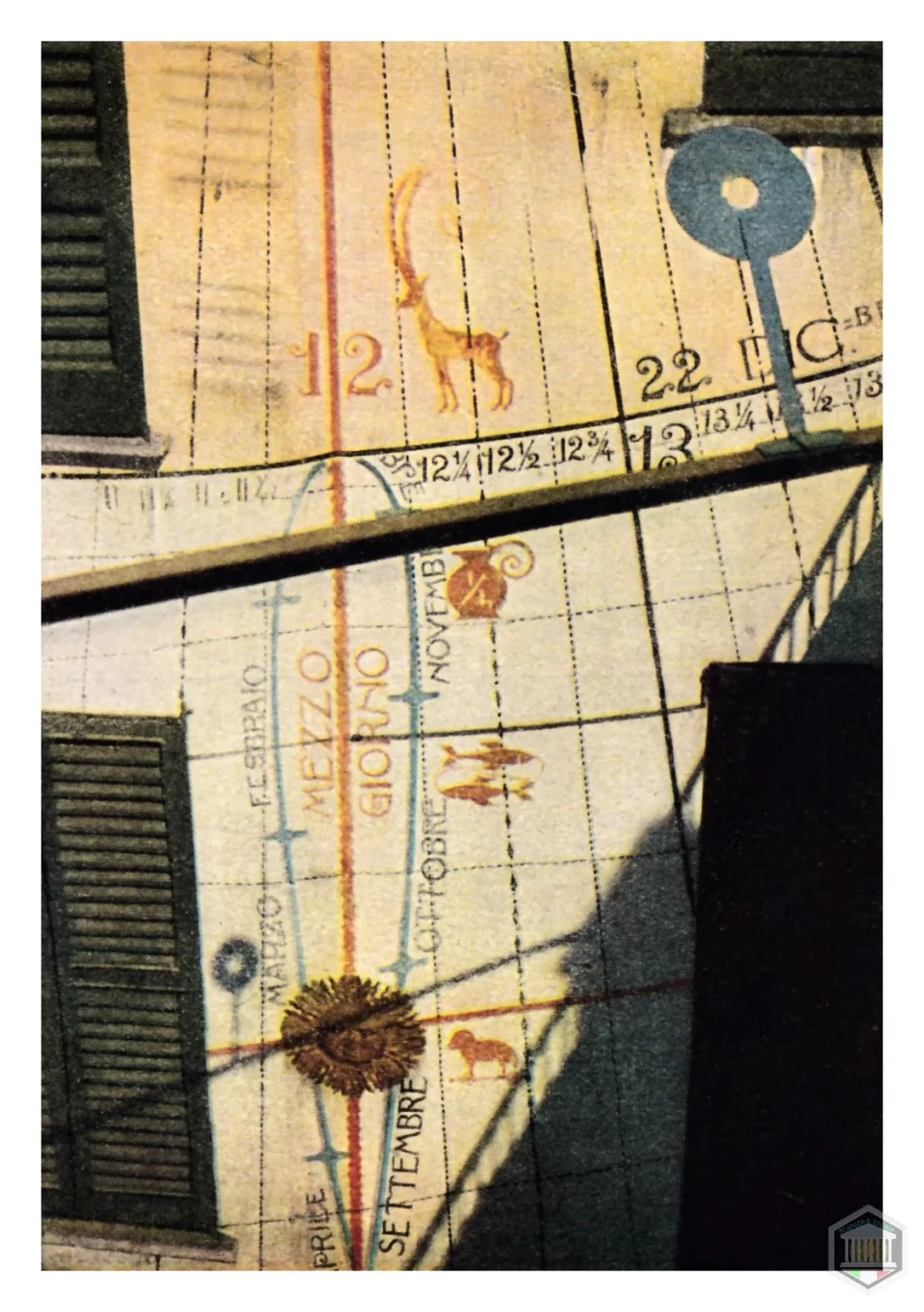 ■ Grandiose sono due meridiane, costruite sulle fronti di palazzi pubblici a Parma e a Piacenza. Famosa è quella a riflesso nel palazzo Spada a Roma: per avere l’ora si guarda su, al cielo della stanza, a quel soldino di luce solare. Notevole l’orologio celeste ch’è sotto il portico della casa madre degli Oblati, a Rho, preciso al minuto.