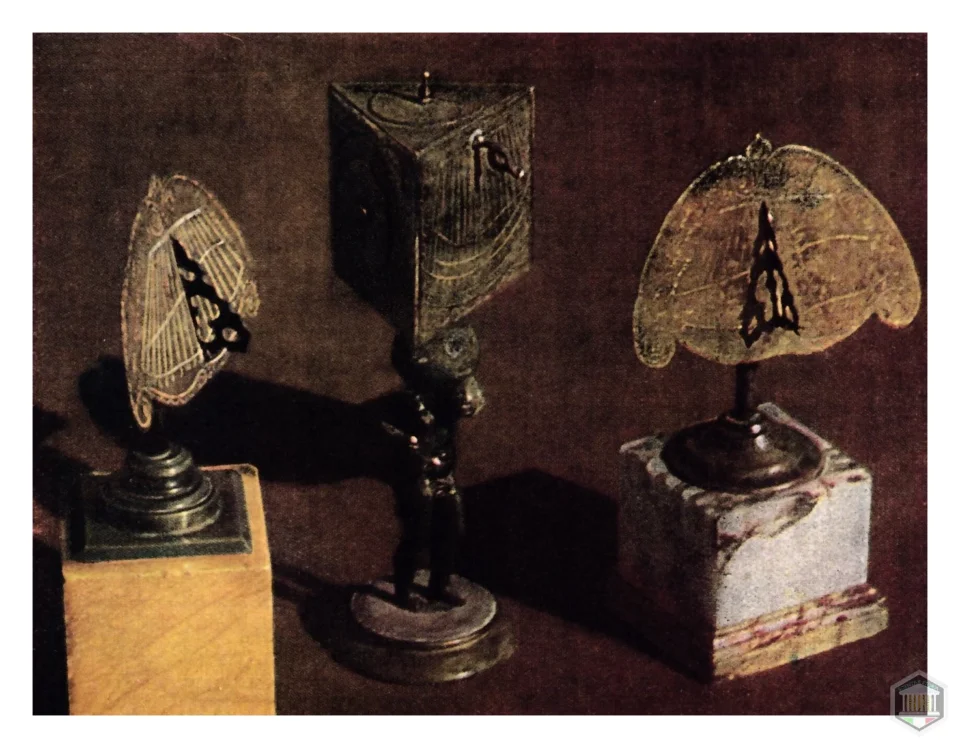 ■ Di orologi solari ce n’è in tutti i tempi e in tutti i Paesi, da Babilonia ad Atene, dall’India all’Egitto… In India si hanno meridiane monumentali, come quelle di Japur e di Nuova Delhi, e in Egitto altissimi obelischi erano gnomoni di giganteschi orologi celesti. Celebre è ad Atene la torre dei venti, una specie di osservatorio meteorologico: nell’interno, Andronico aveva collocato il suo famoso orologio ad acqua, e fuori, sulle pareti ottagonali, sotto i fregi raffiguranti i venti, erano tracciate le linee orarie delle meridiane.
