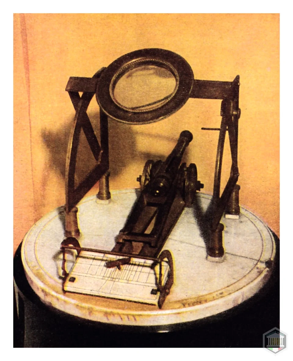 ■ Si inventa la polvere pirica, la si applica alle meridiane e in pieno Seicento si ha il cannone del mezzogiorno. Una piastra di marmo debitamente orientata; nel mezzo è fissato un cannoncino di bronzo, sul quale sovrasta un ponte metallico, graduabile, con nel centro una grossa lente ustoria. Era questo un orologio da giardino e per lo più serviva per segnare il mezzodì. Si regolava la lente, badando alle tacche, in modo che si trovasse a fuoco rispetto alla miccia quando il sole toccava il culmine della traiettoria celeste. Nell’istante voluto, il raggio di sole, infuocato dalla lente, accendeva la miccia e bum… abbiamo dato il segnale orario del mezzogiorno.