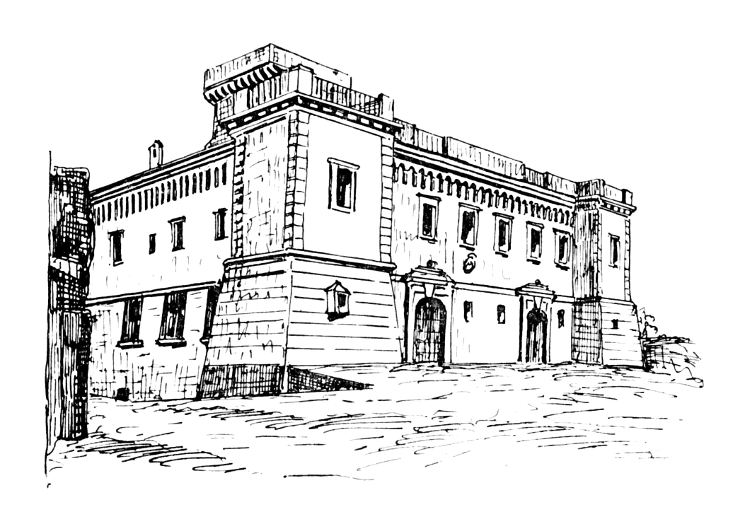■ Tuscolo fu vecchissima città latina, anteriore a Roma e poi divenne un ricchissimo centro romano, perché vi furono le ville di Cicerone, di Ortenzio, di Lucullo, di Crasso, di Metello e di vari imperatori. Nel X secolo era già fortificato ed ancora pieno di vita; vi dominavano i conti omonimi. Non accettando questi la supremazia del Vescovo di Roma, nel 1191, Enrico VI, dopo essere stato coronato imperatore da Celestino III, si recò a combatterli e presa Tuscolo ne uccise in gran parte gli abitanti e rase al suolo il castello. La famiglia comitale si sparse per la campagna negli altri suoi feudi, e gli abitanti superstiti si portarono a fondare Frascati. Dal castello di Tuscolo dipendeva quello di Molara che sbarrava la Via Latina e che fu anch’esso distrutto, sicché oggi di ambedue esistono pochi informi ruderi. Frascati a sua volta ingranditasi fu sottomessa dai Colonna; questi vi eressero mura e castello, il quale era situato ove ora è il palazzo vescovile (fig. 30) che ne conserva la forma quadrata con torri quadrate agli angoli.