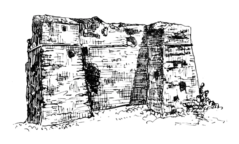 ■ Dall’Appia Antica si stacca la Via Ardeatina, lungo la quale sono: La Cecchignola (fig. 25), che conserva ancora un’alta torre merlata con recinto turrito; poscia una quantità di altre torri (Tor Pagnotta, Tor Chiesaccia, il Torraccio, Tor Marancia, Tor Carbone, ed altre) tutte con importanti ruderi. Indi è Castel di Leva, ora grosso casale col santuario del Divino Amore, che fu Castello degli Orsini, costruito sui ruderi della città romana di Tellene. La cinta in gran parte esiste tuttora ed ha sei torri quadre, in una delle quali è l’antica porta con fosso e ponte levatoio. Nello interno era la rocca con varie torri che tuttora esistono e si distinguono tra molte costruzioni posteriori. Castel di Leva fu un fortilizio molto importante ed aveva attorno una quantità di opere sussidiarie, tra le quali verso occidente il Castello di Palavesta (fig. 26), ora ridotto ad informi ruderi, poi la Torre Quadrata, quella della Castelluccia con propria cinta, quella della Falcognana, quella di Cerqueto (fig. 27), ed altre.